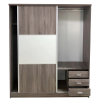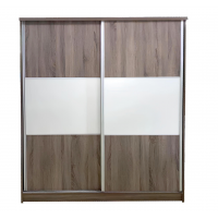 - En panneaux de particules revêtus de papier décor bois flotté avec bande centrale coloris blanc